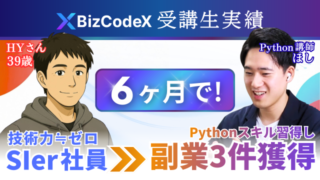 【受講生実績】開発経験ほぼゼロの39歳SIer社員 → わずか6ヶ月でPython副業3件獲得!【ほし×HYさん】