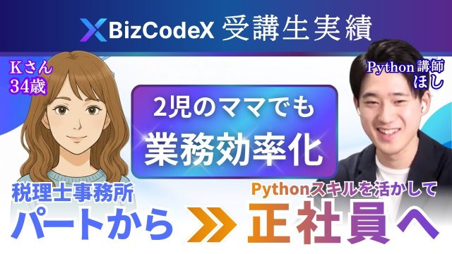 【受講生実績】プログラミング完全未経験の34歳・税理士事務所パート → 8ヶ月で業務自動化&正社員登用!【ほし×Kさん】
