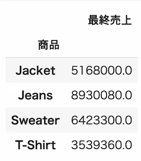 sales_by_product = df.groupby('商品')['最終売上'].sum()